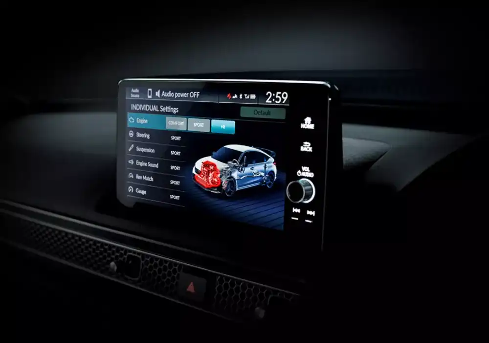 All New Honda Civic Type R dilengkapi dengan 4-Mode Driving System yang mendukung semangat Anda dalam berkendara. Fitur ini terdiri dari +R mode, Comfort mode, Sport mode, dan 1 mode baru yaitu Individual Mode yang memungkinkan Anda untuk mengatur setting pada engine, steering wheel, suspension dan lainnya guna menciptakan mode berkendara yang lebih sesuai dengan preferensi Anda.