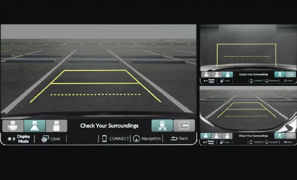 Kamera belakang dengan berbagai sudut pandang, membantu parkir dan mundur lebih aman.