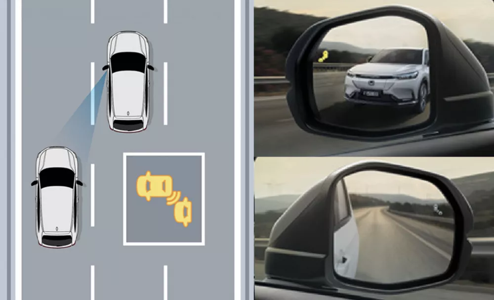 Memberi peringatan saat ada kendaraan di blind spot, membantu pindah jalur lebih aman.